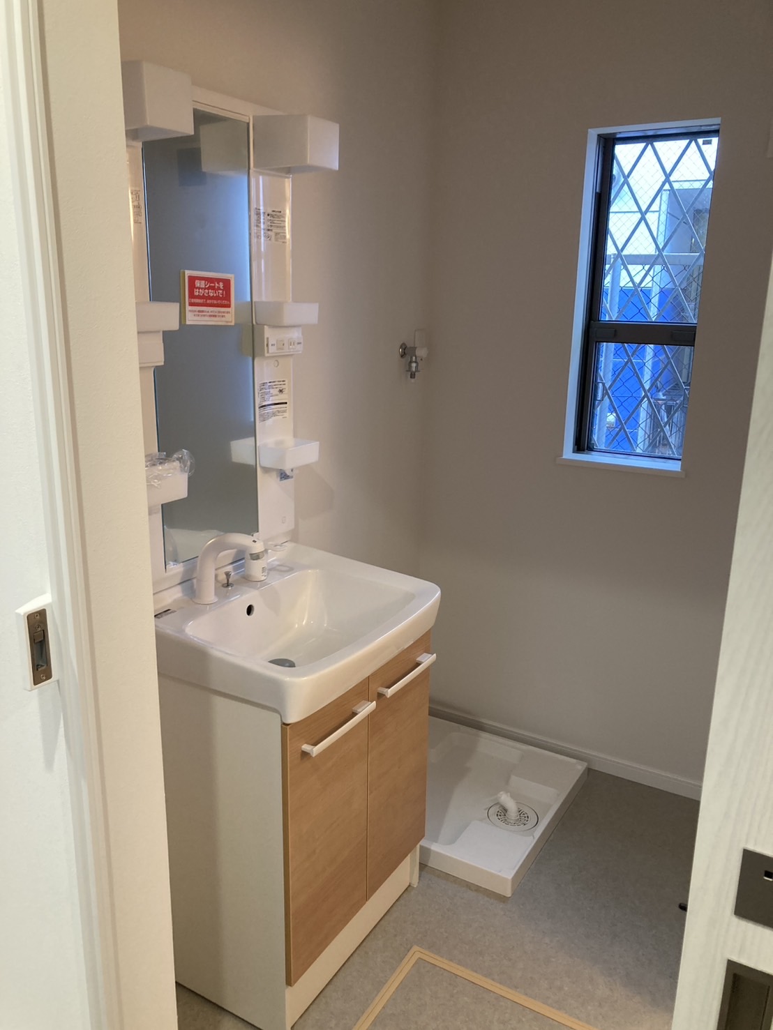 ■玄関を入ってすぐの場所に水回りを集約。