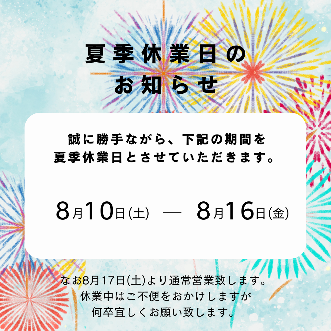 夏季休業日のお知らせ